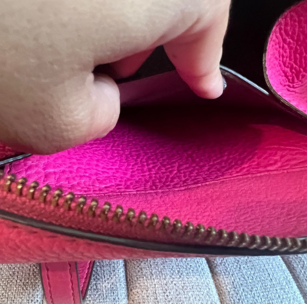 pebbled leather exterior and leather lining, this small satchel measures 8 inches in width, 7 inches in height, and 4 inches in depth